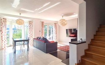 Dom w dobrym stanie technicznym - obecnie powierzchnie do odświeżenia. Wykończenie: okna PCV 3-szybowe podłogi - gres, panele, schody drewniane; ściany malowane.