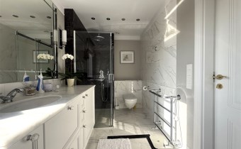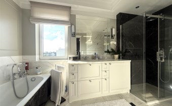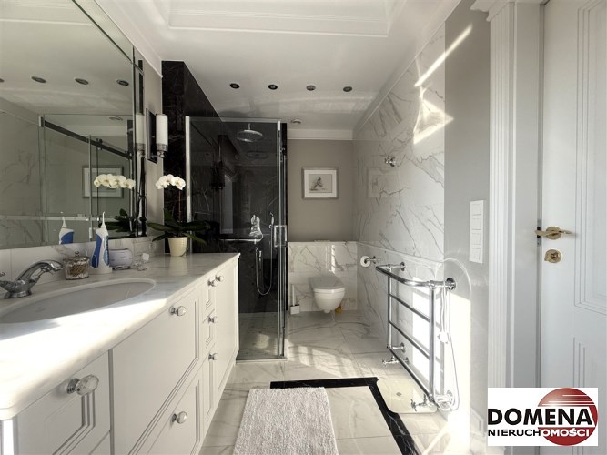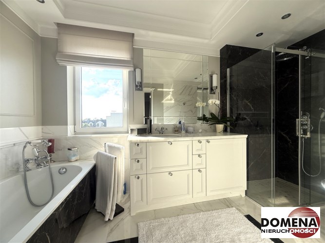 2 garderoby), duża łazienka z wanną i prysznicem oraz WC, korytarz