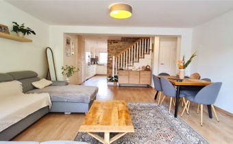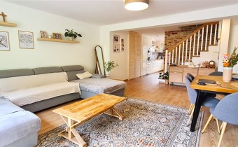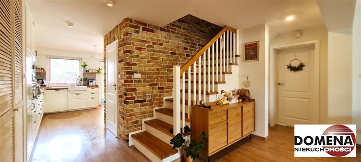 Dom typu bliźniak podpiwniczony, o powierzchni użytkowej 100m2, całkowitej 150m2 usytuowany na działce o powierzchni 300m2; działka ogrodzona z miejscem parkingowym przy wjeździe.