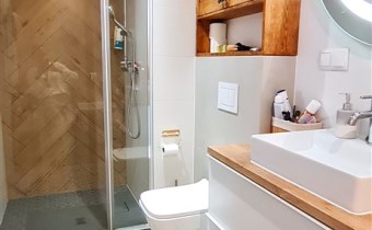 - podłogi - gres, panele w podwyższonym standardzie;