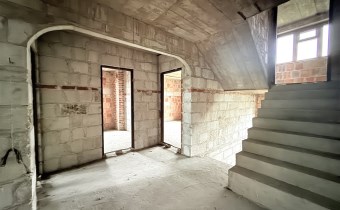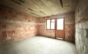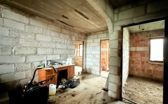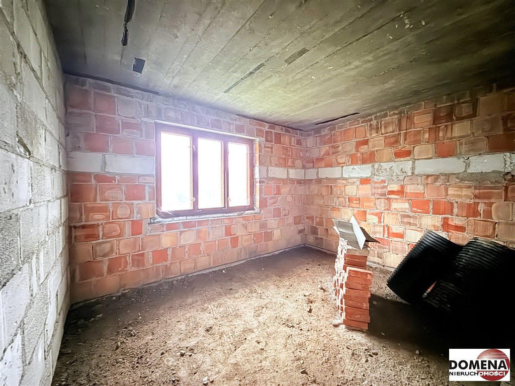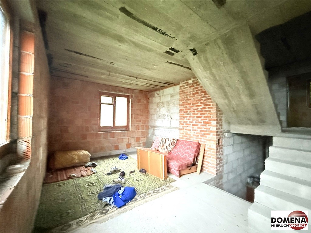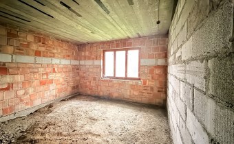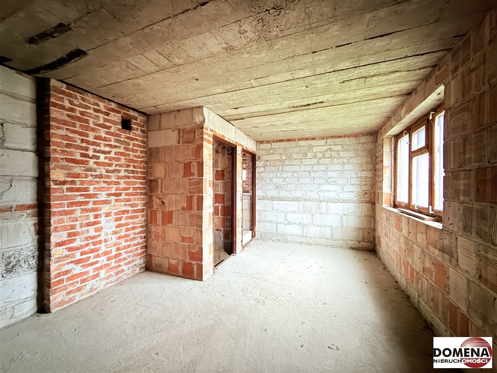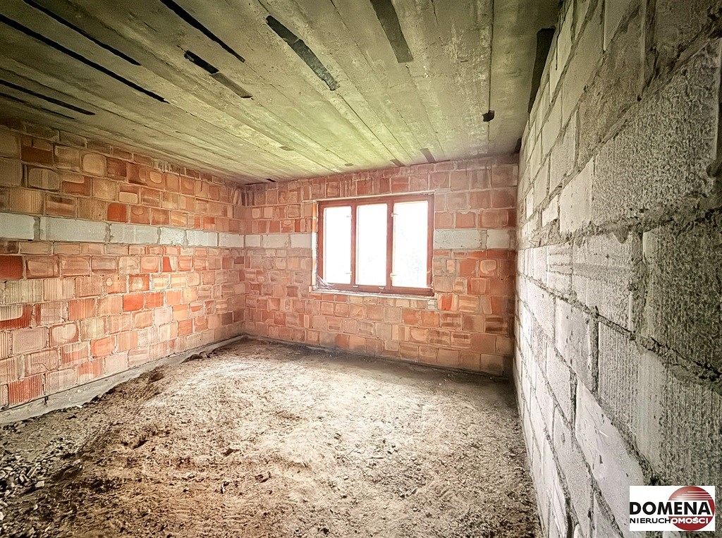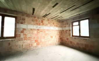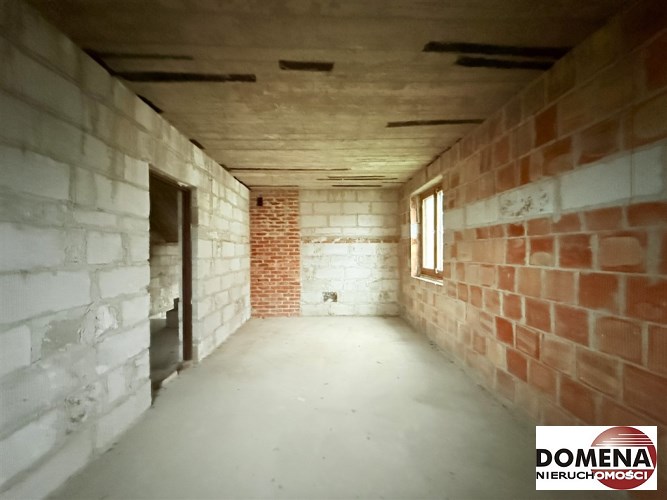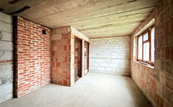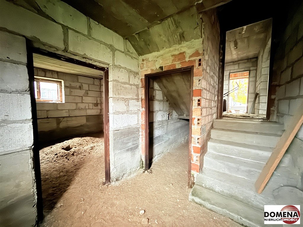 Dom w stanie surowym otwartym bez elewacji do wykończenia; okna drewniane do wymiany.