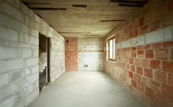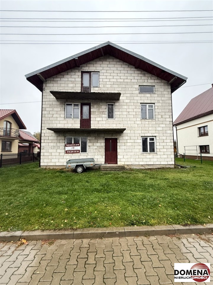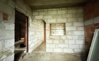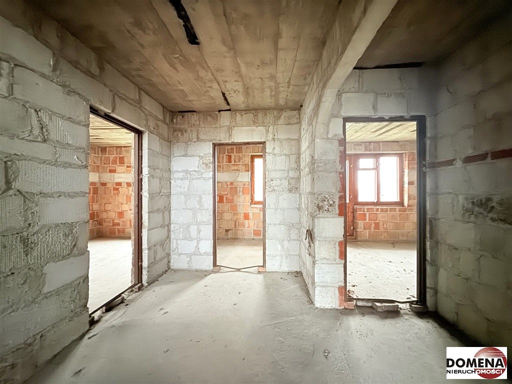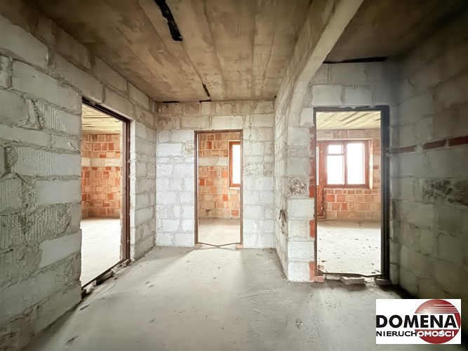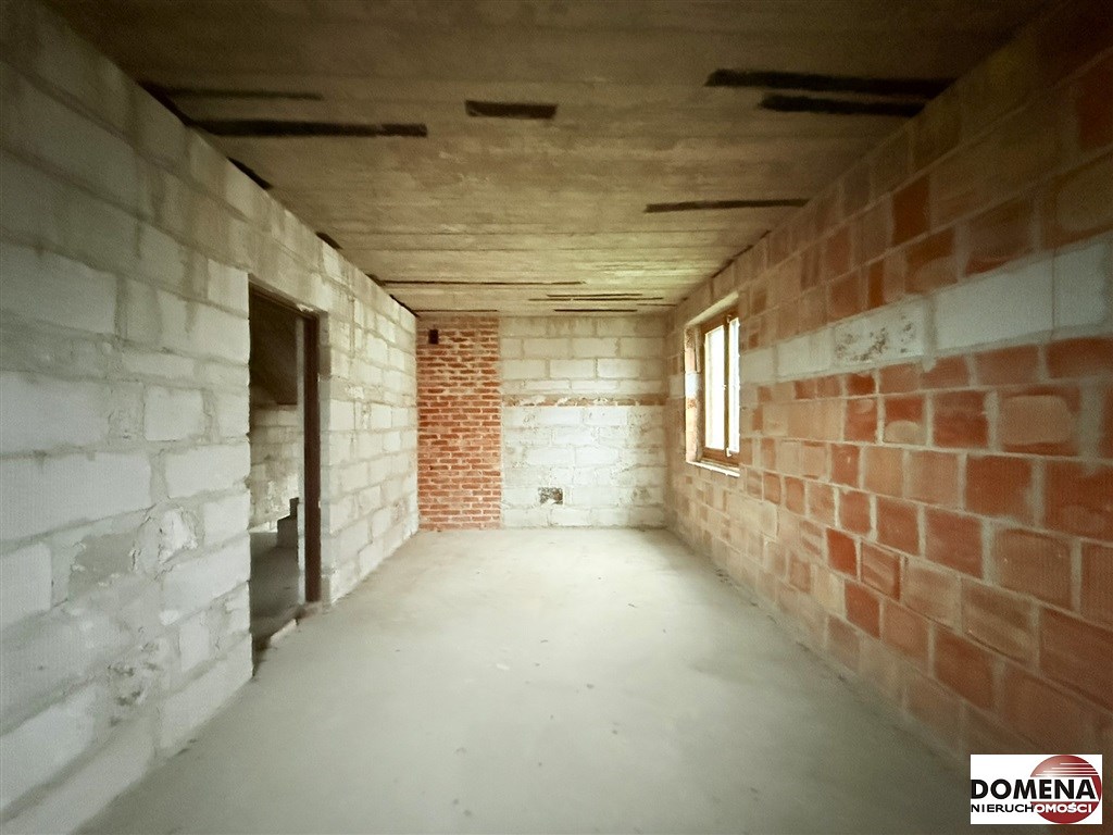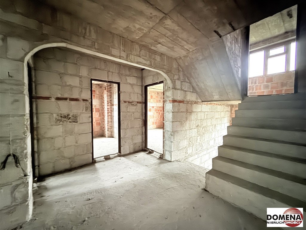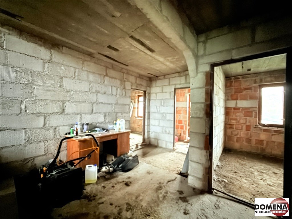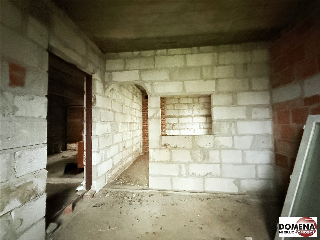 Dom w stanie surowym otwartym bez elewacji do wykończenia; okna drewniane do wymiany.