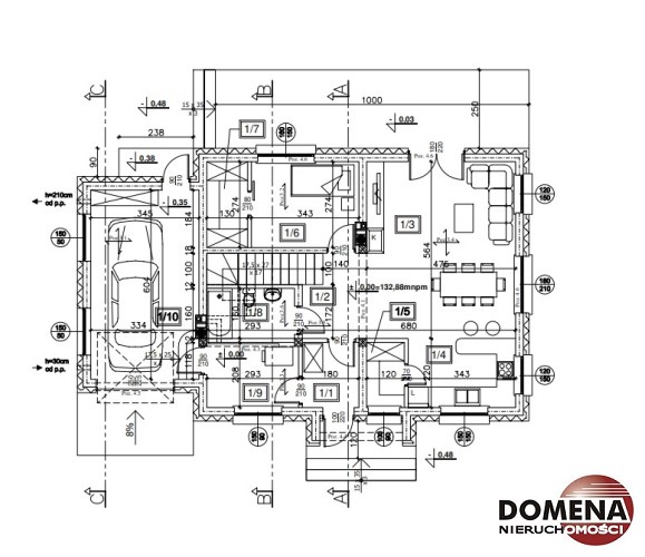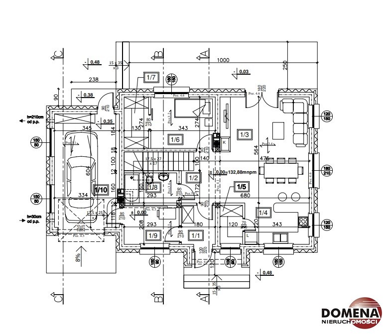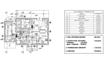 Dom wolnostojący o nowoczesnej bryle architektonicznej, parterowy z poddaszem użytkowym, niepodpiwniczony o powierzchni użytkowej 144m2, usytuowany na dużej działce 890m2.