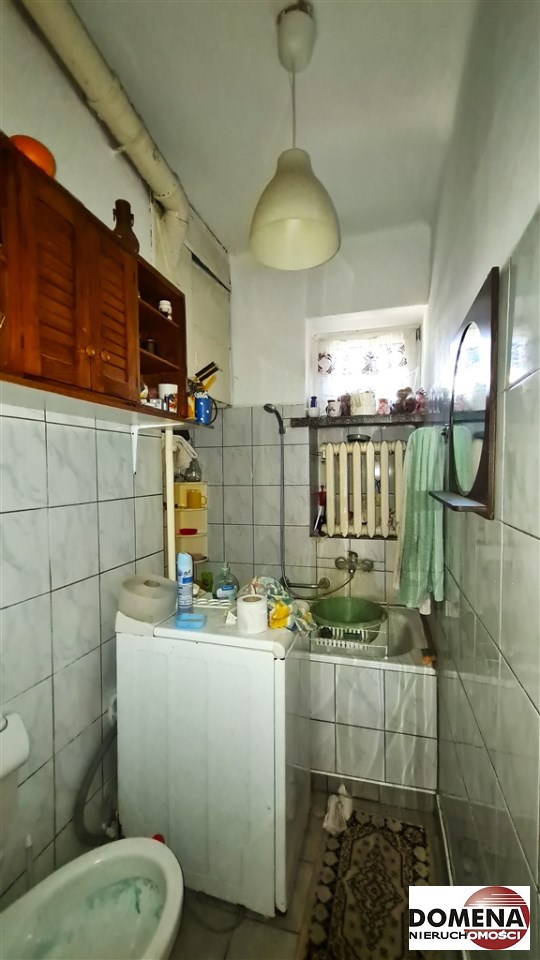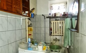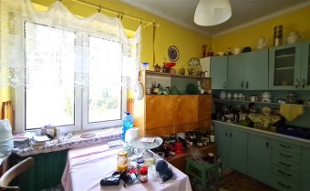 Parter w stanie do remontu: 3 pokoje w układzie przejściowym, kuchnia, łazienka z WC.