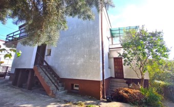 Technologia budowy: dom murowany - ściana 3-warstwowa z ociepleniem 15 cm styropianu, okna wymieniona na drewniane 3-szybowe do renowacji; dach - stropodach wentylowany, pokryty papą.