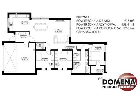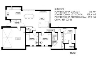 Dom wolnostojący o nowoczesnej bryle architektonicznej, parterowy, niepodpiwniczony o powierzchni użytkowej 158m2, usytuowany na dużej działce 915m2.