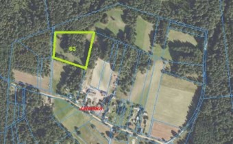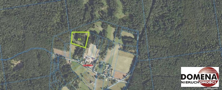 Działka w kształcie trapezu, częściowo porośnięta drzewostanem, niezabudowana. Dojazd drogą polną - szerokość frontu - ok.78m.