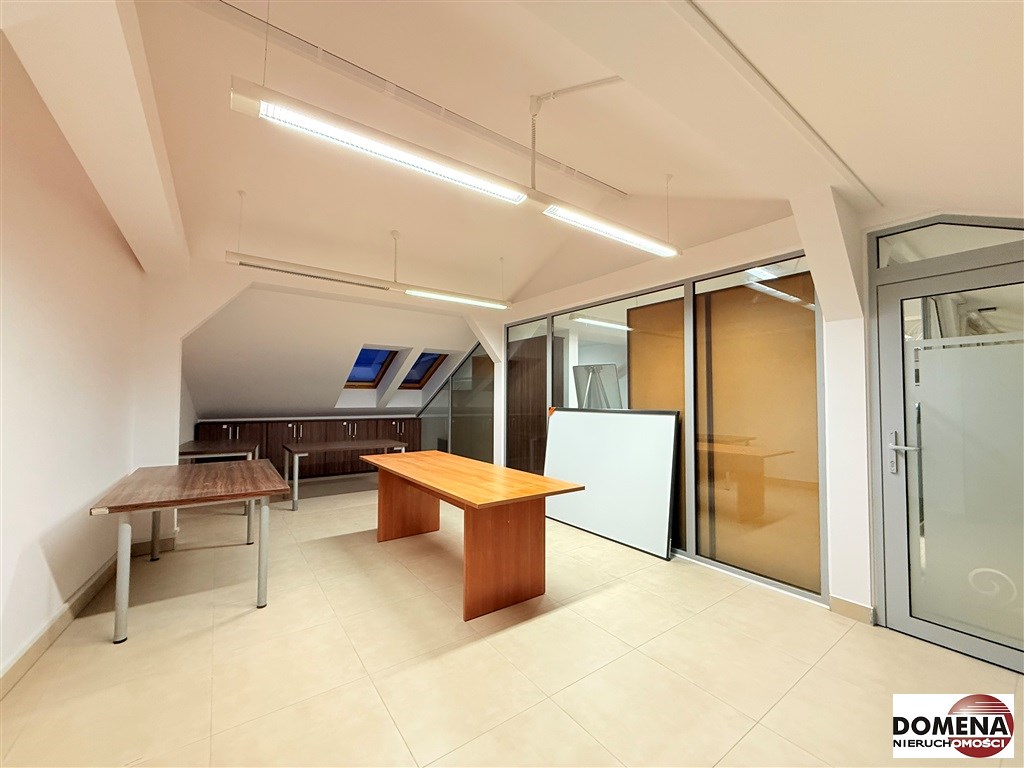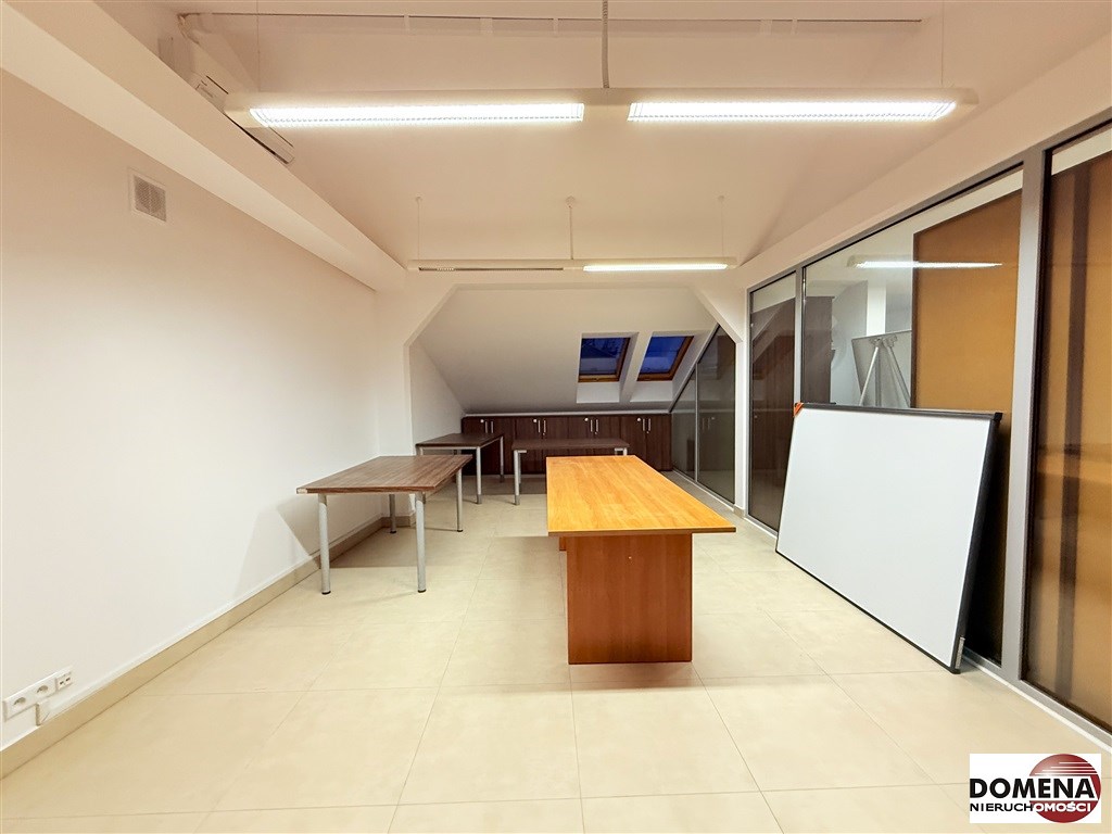 Lokal o metrażu użytkowym 35m2 usytuowany na trzecim piętrze stanowi obecnie 1 pomieszczenie, toaleta oraz aneks kuchenny ogólnodostępny współdzielony z innymi najemcami na tym samym piętrze.
