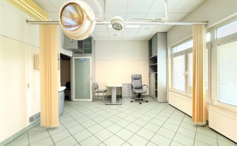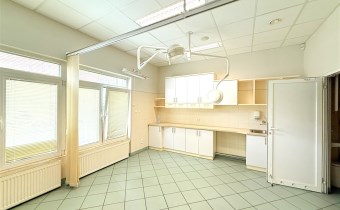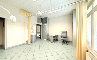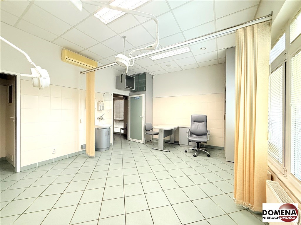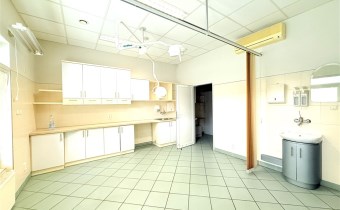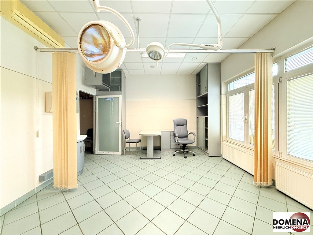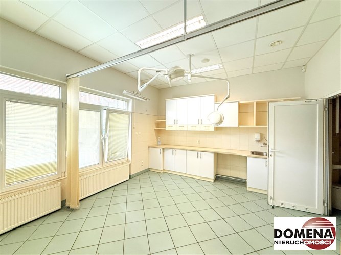 Lokal wyposażony w liczne zabudowy stałe, lodówkę podblatową oraz lampy chirurgiczne.
