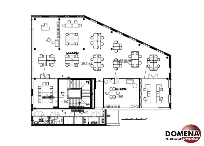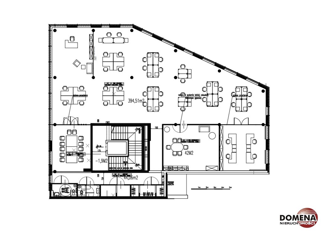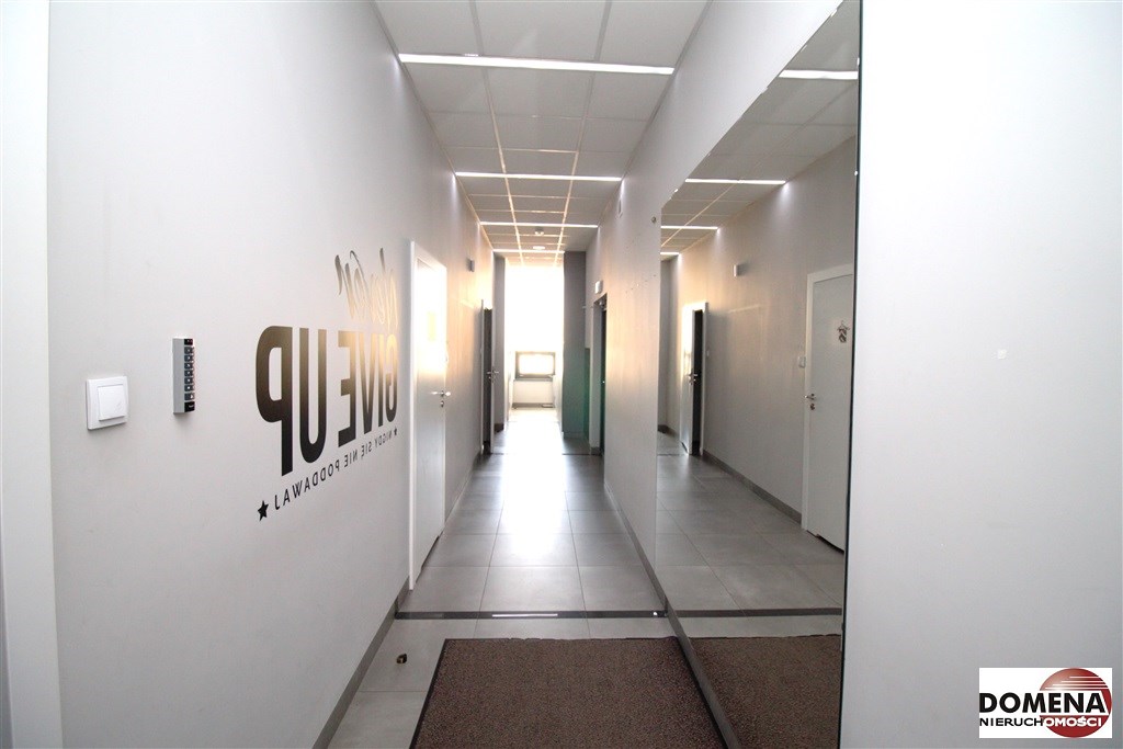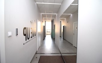 Na powierzchni 439 m2 znajduje się pomieszczenie typu open space, 3 gabinety biurowe (możliwość dowolnej aranżacji wnętrza wg potrzeb najemcy), 2 toalety, powierzchnia socjalna, korytarz.