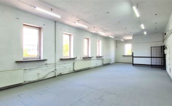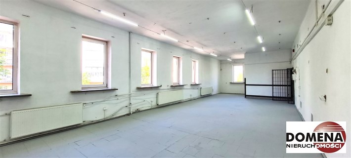 80m2 w układzie przejściowym: 2 pomieszczenia (60m2 i 20m2) z toaletami dostępnymi na korytarzu; stan lokalu - do odnowienia.