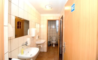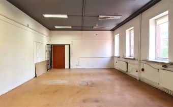80m2 w układzie przejściowym: 2 pomieszczenia (60m2 i 20m2) z toaletami dostępnymi na korytarzu; stan lokalu - do odnowienia.