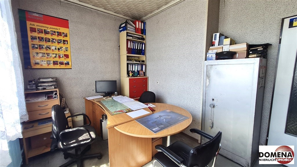 z wysokim kanałem), warsztat, pomieszczenie w piwnicy; oraz na I piętrze: biuro, zaplecze socjalne z łazienką.