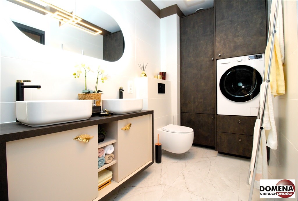 -2 eleganckie łazienki z WC (wanna, nowoczesny panel prysznicowy) zapewniają wygodę oraz intymność, w łazience pralko-suszarka;