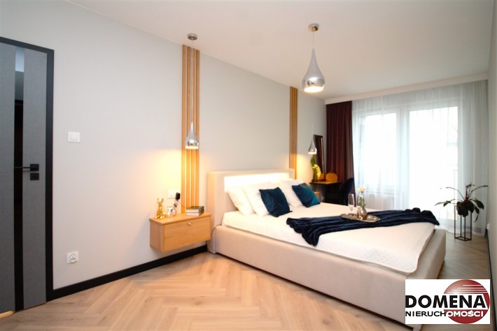 Mieszkanie wykończone w podwyższonym standardzie z dbałością o szczegóły - wybór harmonijnych kolorów ścian i mebli; dobór wysokiej jakości materiałów i dodatków, które nadają elegancji i luksusowego wyglądu. Zastosowanie designerskiego oświetlenia, takiego jak lampy wiszące - tworzą przytulną i stylową atmosferę. Drobne dodatki - plakaty, ramki ze zdjęciami, rośliny czy dekoracyjne poduszki, nadają charakteru i osobowości mieszkaniu.