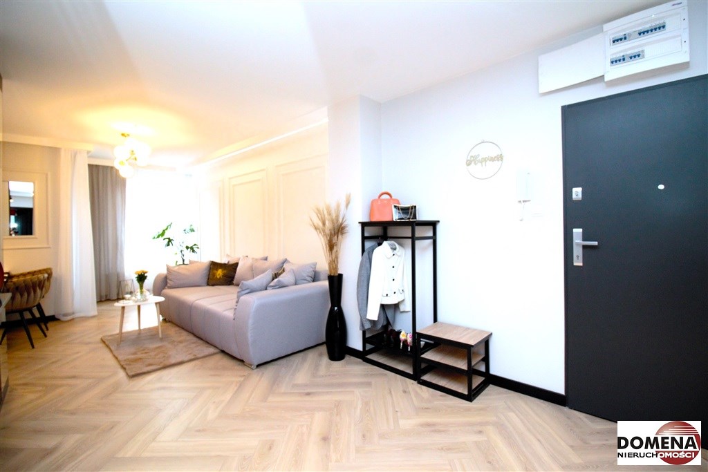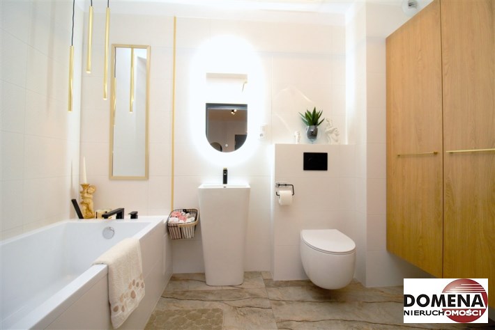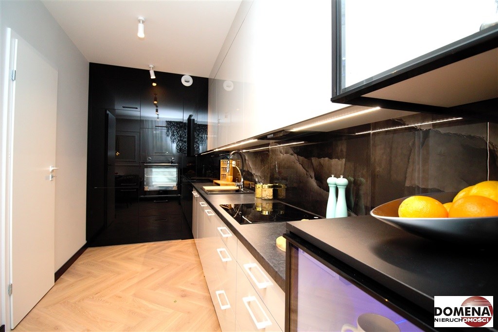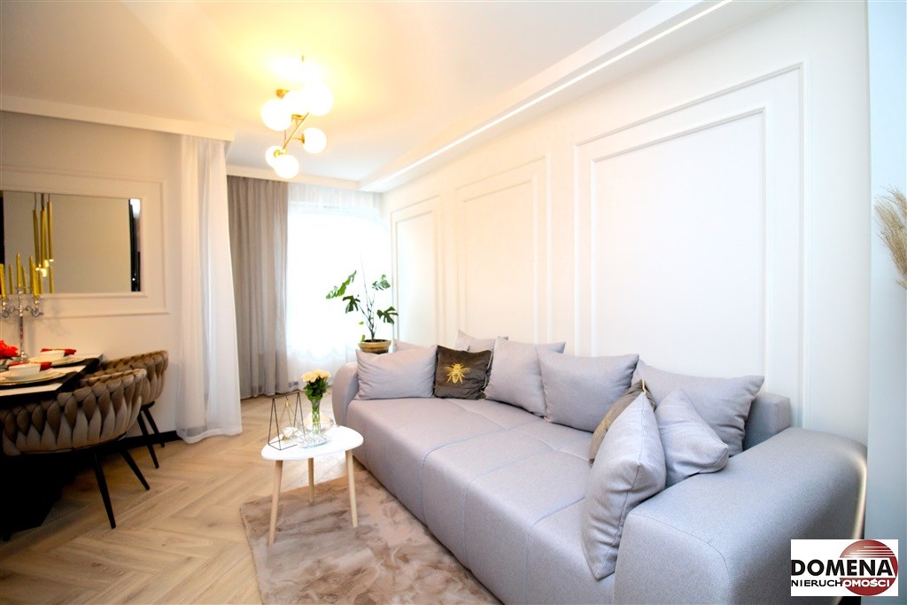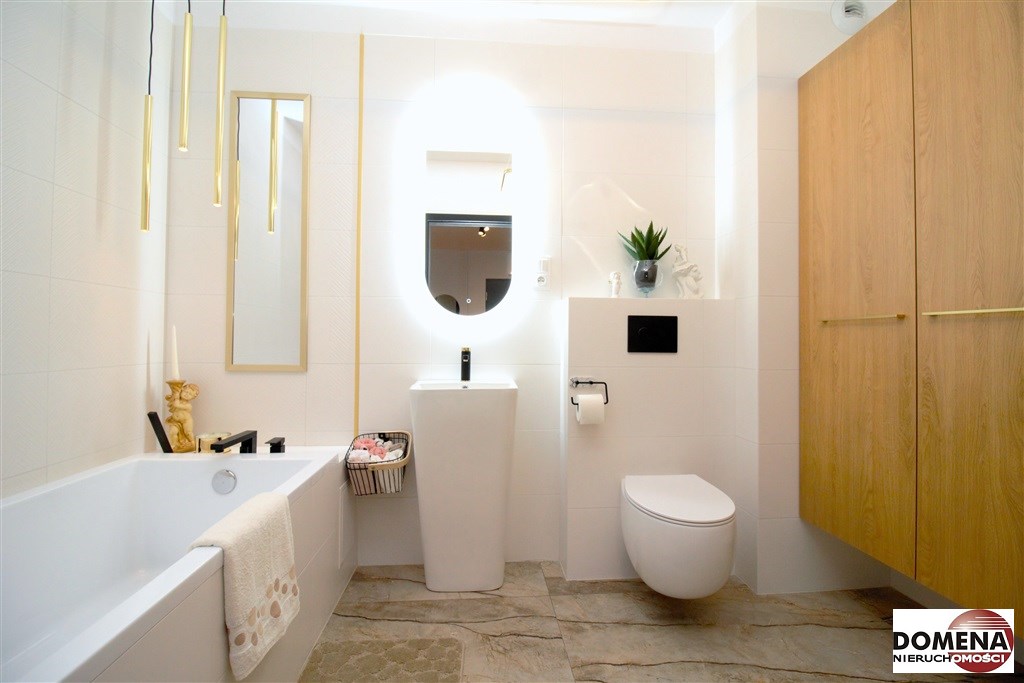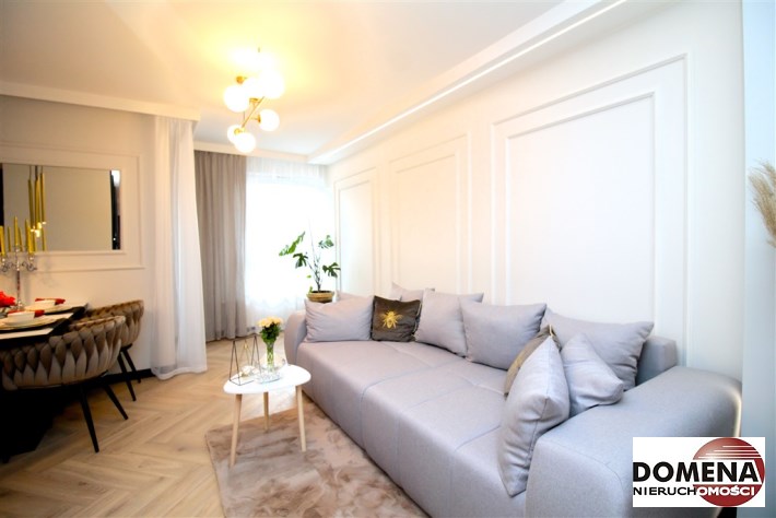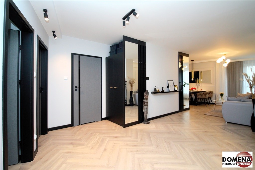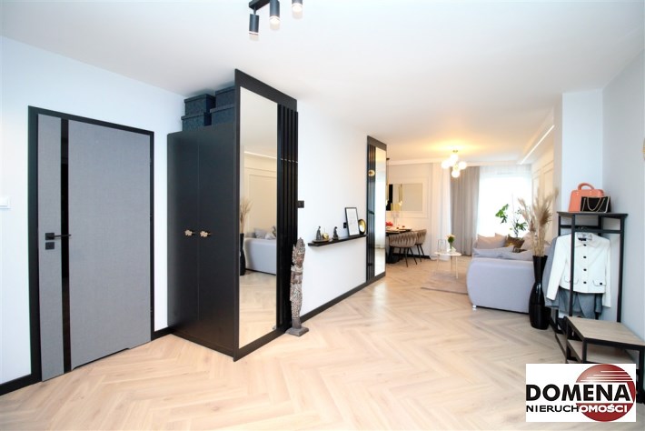 Mieszkanie wykończone w podwyższonym standardzie z dbałością o szczegóły - wybór harmonijnych kolorów ścian i mebli; dobór wysokiej jakości materiałów i dodatków, które nadają elegancji i luksusowego wyglądu. Zastosowanie designerskiego oświetlenia, takiego jak lampy wiszące - tworzą przytulną i stylową atmosferę. Drobne dodatki - plakaty, ramki ze zdjęciami, rośliny czy dekoracyjne poduszki, nadają charakteru i osobowości mieszkaniu.