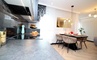 - salon połączony z jadalnią i otwartą kuchnią - stanowiący serce mieszkania, które tworzy przyjemną przestrzeń do wspólnych spotkań. Praktyczna spiżarnia pozwala na przechowywanie zapasów oraz utrzymanie porządku. W kuchni nowoczesna, wysokiej jakości zabudowa wraz ze sprzętem AGD (lodówka, zamrażarka, piekarnik, płyta indukcyjna, okap, zmywarka); w salonie wygodna kanapa;
