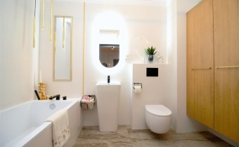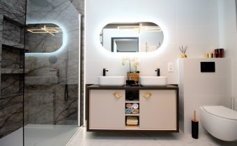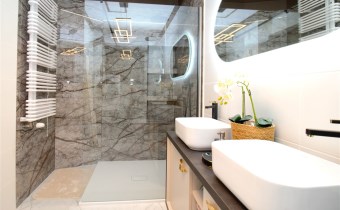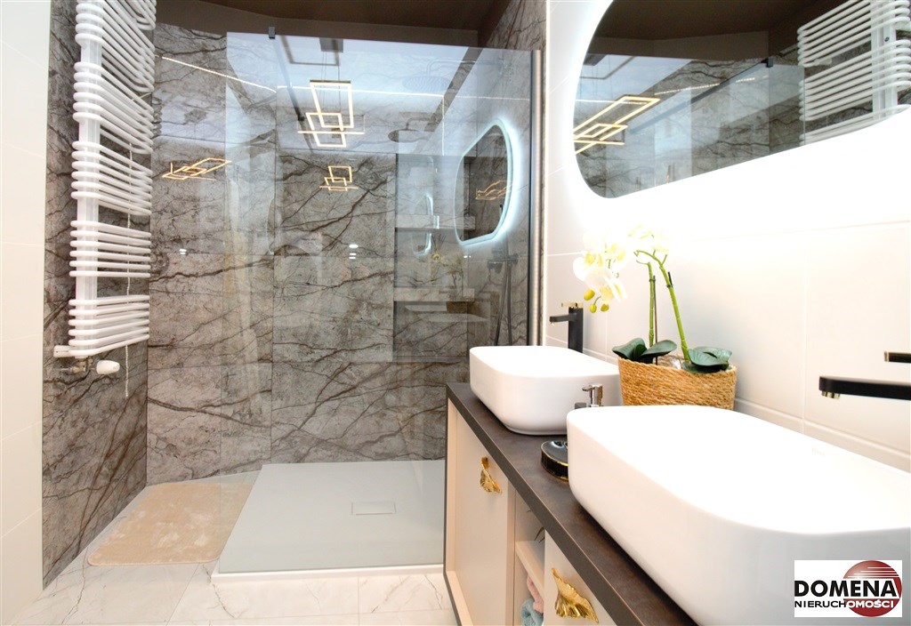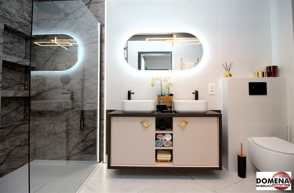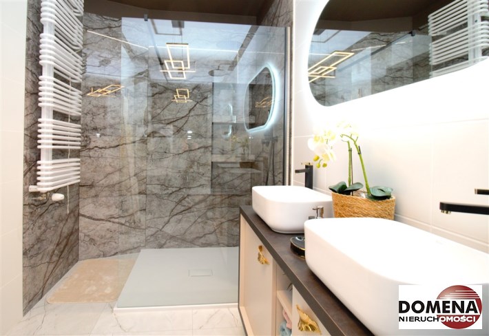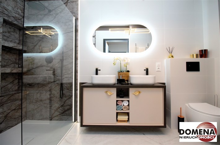 -2 eleganckie łazienki z WC (wanna, nowoczesny panel prysznicowy) zapewniają wygodę oraz intymność, w łazience pralko-suszarka;