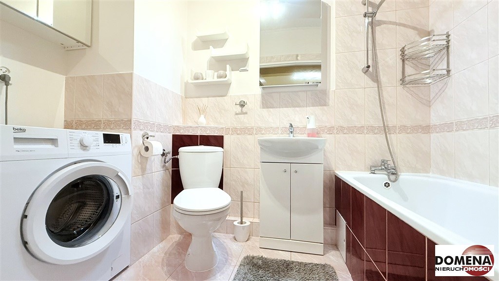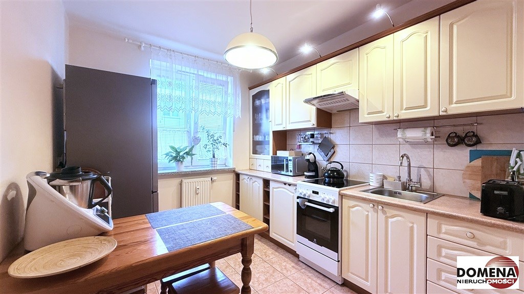 W cenie nieruchomości pozostaje: zabudowa stała kuchni z AGD (kuchenka, okap, lodówka, pralka w łazience); zabudowa stała sypialni, korytarza oraz pełne umeblowanie ruchome - d/u.