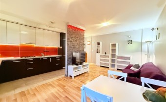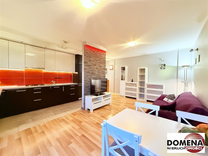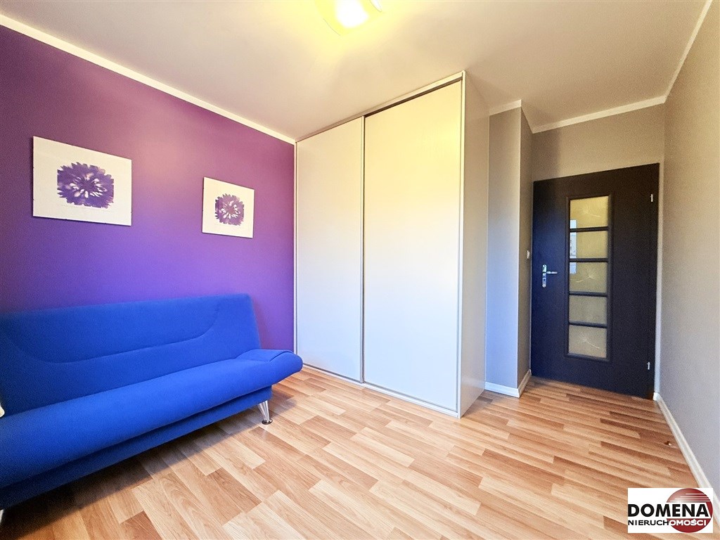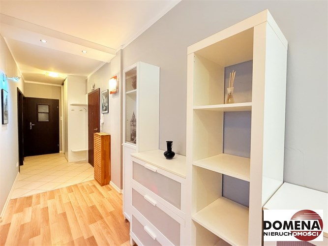 Wyposażenie oferowane w cenie: zabudowa stała kuchni z AGD (blat gazowy, okap, zmywarka, lodówka), zabudowy stałe korytarza i sypialni, wyposażenie ruchome widoczne na zdjęciach.
