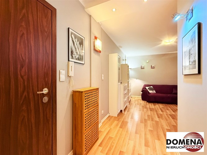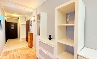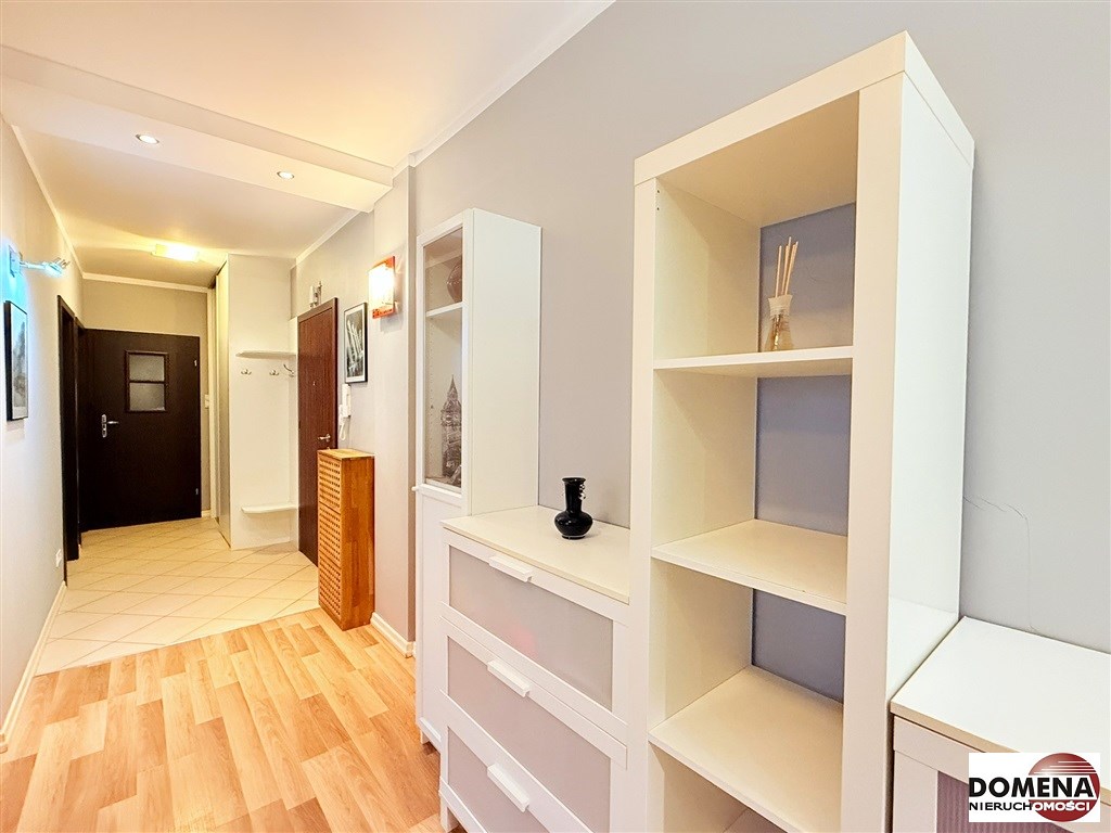 Wyposażenie oferowane w cenie: zabudowa stała kuchni z AGD (blat gazowy, okap, zmywarka, lodówka), zabudowy stałe korytarza i sypialni, wyposażenie ruchome widoczne na zdjęciach.