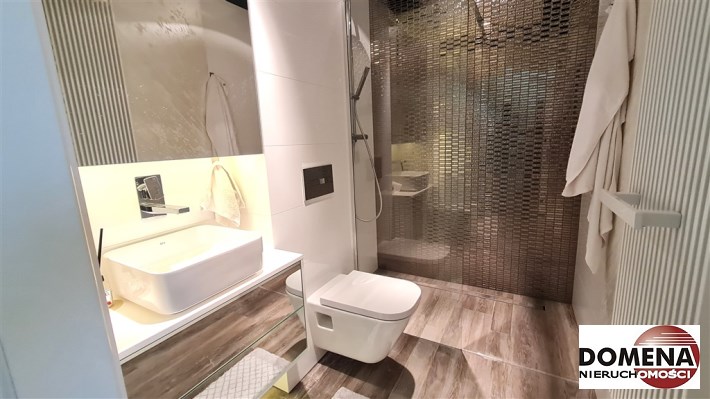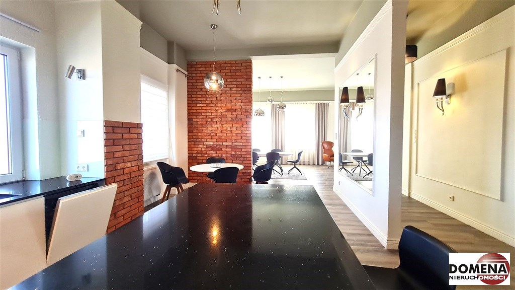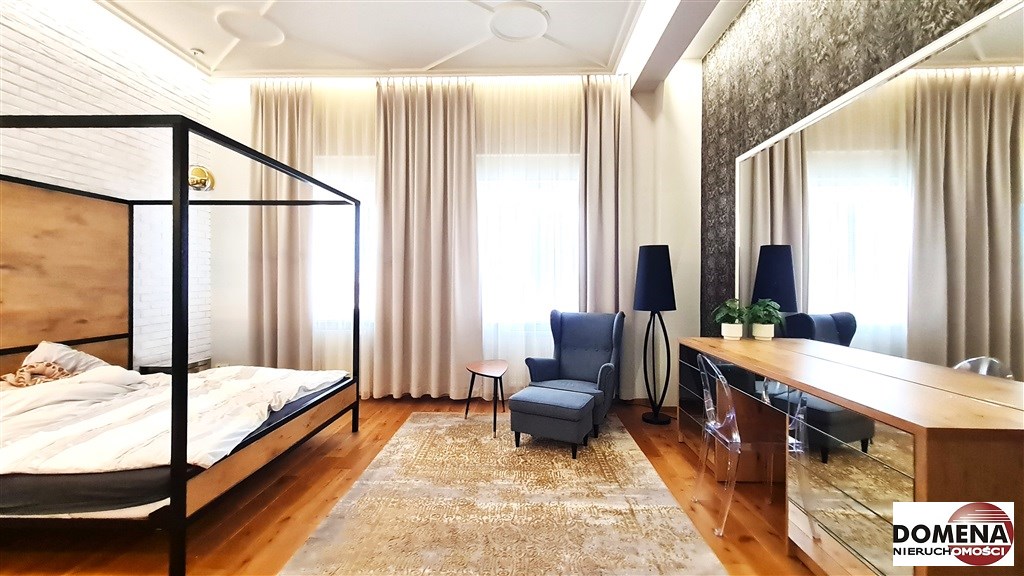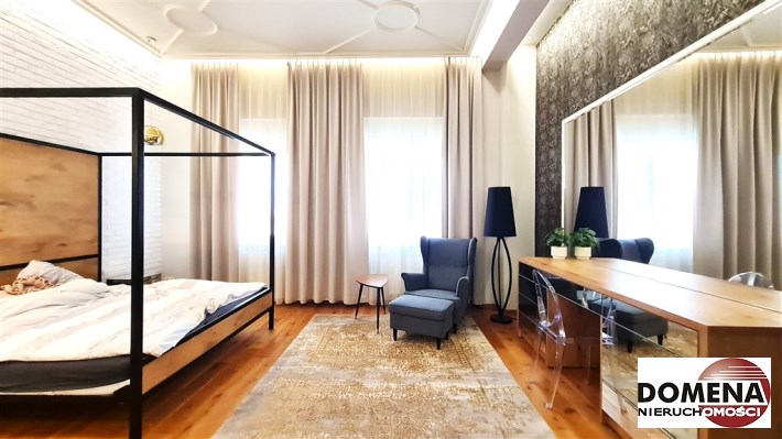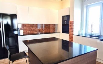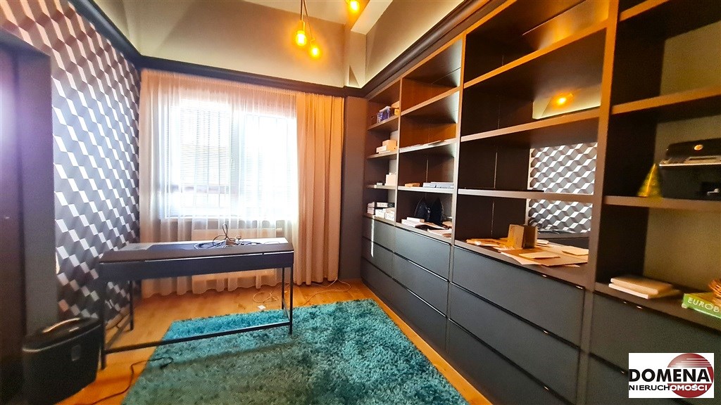 Mieszkanie wykończone materiałami najwyższej jakości w bardzo dobrym stanie technicznym, wyposażony w zabudowę stałą kuchni z AGD: blat indukcyjny, piekarnik, lodówka, zmywarka; blaty kuchenne i wyspy wykonane z kamienia; zabudowę stałą garderoby, pokoju do pracy, pełne umeblowanie widoczne na zdjęciach; pralka i suszarka w pomieszczeniu gospodarczym.