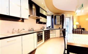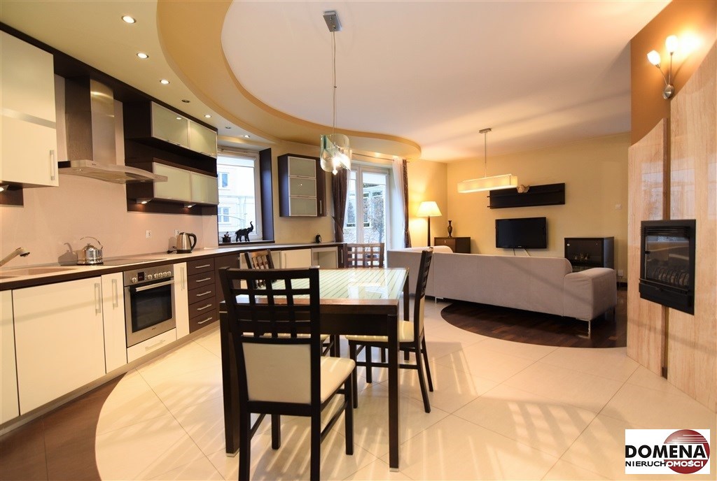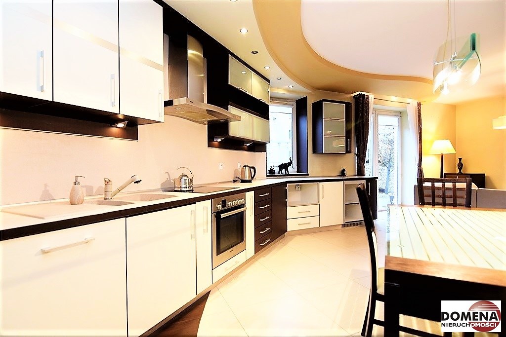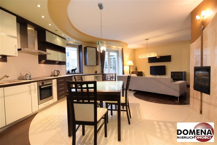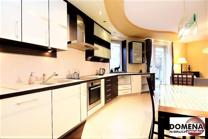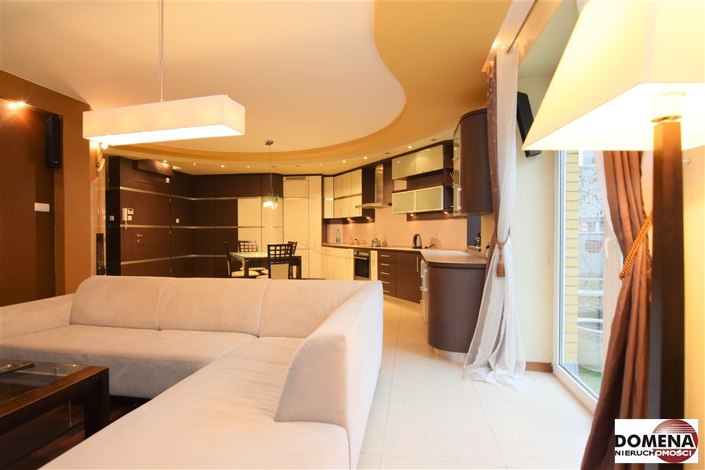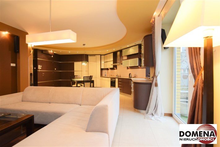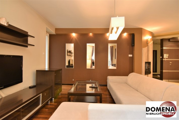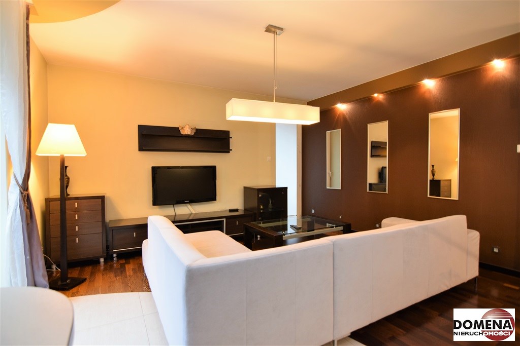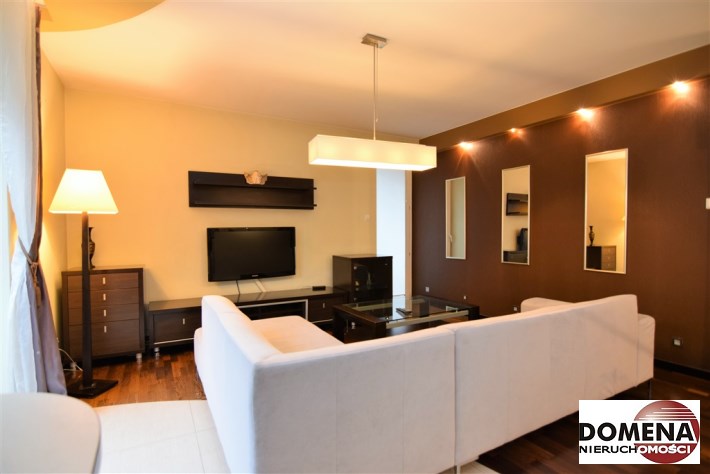 Apartament oferowany jest do wynajmu z pełnym wyposażeniem: zabudowy stałe kuchni, pojemne zabudowy stałe korytarza i sypialni, telewizor LED, kino domowe z DVD, pralka, lodówka, zmywarka, płyta elektryczna, okap; pełne umeblowanie widoczne na zdjęciach: kanapa w salonie, liczne komody, łoże małżeńskie, rozkładana sofa; możliwość doposażenia mieszkania na zapytanie.