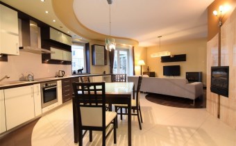 Mieszkanie wykończone w wysokim standardzie z dbałością o detale,  w bardzo dobrym stanie technicznym, gotowe do wprowadzenia: podłogi - gres, drewno egzotyczne afrykańskie.